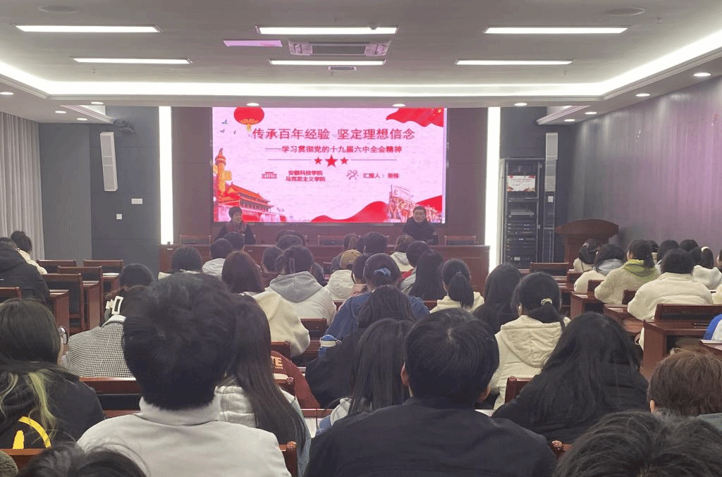 宣讲会上,张栋老师紧扣主题,从四个历史时期及主要任务、新时代与共产党人的远大理想、马克思主义中国化的三次飞跃和胸怀理想继续前行四个部分依次展开,系统性地阐释了全会精神的主要内容、丰富内涵和重大历史意义,并以当下热点话题为切入点,列举大量详实数据和案例,深入浅出地向同学们讲明白“马克思主义为什么行,中国共产党为什么能,中国特色社会主义为什么好”的深刻内在逻辑,并激励大家要深入学习马克思主义科学理论,胸怀远大理想抱负,用实际行动践行“请党放心,强国有我”的青春宣言。