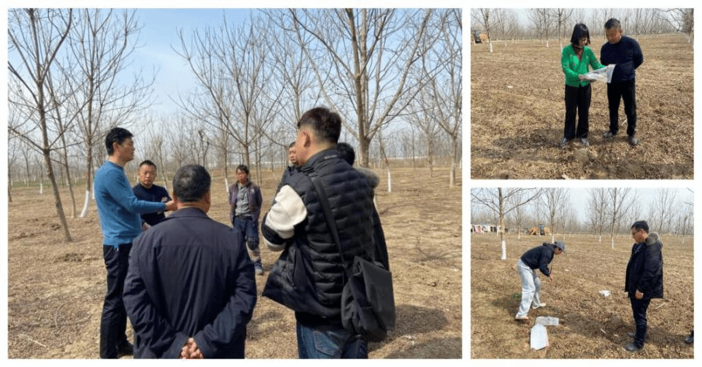 3月4日,学院党委书记付光玺教授带领食品工程学院食品营养与安全系教工党支部书记、安徽省果树产业技术体系果品流通与加工岗位专家杨剑婷博士,资源与环境学院农业资源与环境实验室主任、安徽省秸秆和畜禽养殖废弃物综合利用现代农业产业体系综合试验站站长王泓博士,共同前往阜阳恒明悦农业科技公司进行技术指导。阜阳恒明悦农业科技有限公司以碧根果产业为主体,付光玺、王泓、杨剑婷分别就林下经济发展、园区绿肥种植、碧根果加工等为企业人员做了培训。碧根果开始挂果,但是座果率较低,落果严重,针对该问题王泓就地取土样50多份,回实验室测定微量元素,在碧根果土肥技术方面提供支持;杨剑婷联系省果树产业体系岗位专家、省农科院农业工程研究所吴炜博士就碧根果病害和落果问题做了远程的诊断和指导。双方同时就产学研合作和人才培养做了深入探讨。