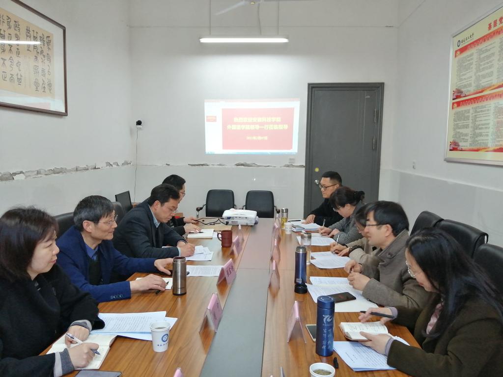 为进一步推动翻译专业硕士点(MTI)创建和英语师范专业认证工作,3月7日,外国语学院院长陈德用、党委书记蔡为青、副院长刘萍、翻译专业教研室主任邓兆红、英语教研室主任兼专业负责人洪民、翻译专业负责人王黎韬一行六人赴安徽理工大学和淮南师范学院开展调研交流工作。