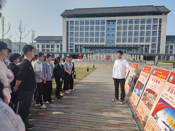 据悉,本次活动共制作“伟大建党精神”系列精神谱系展板16块,安排安徽省大学生党史知识竞赛三等奖获得者--财务管理191班李绍红等5名同学担任宣讲员,共有学生党员、入党积极分子、学生干部等100余人参加宣讲活动,龙湖校区近500名师生学习、观看了展板。(特约通讯员:张俊 审核:杜小明编辑:张威)