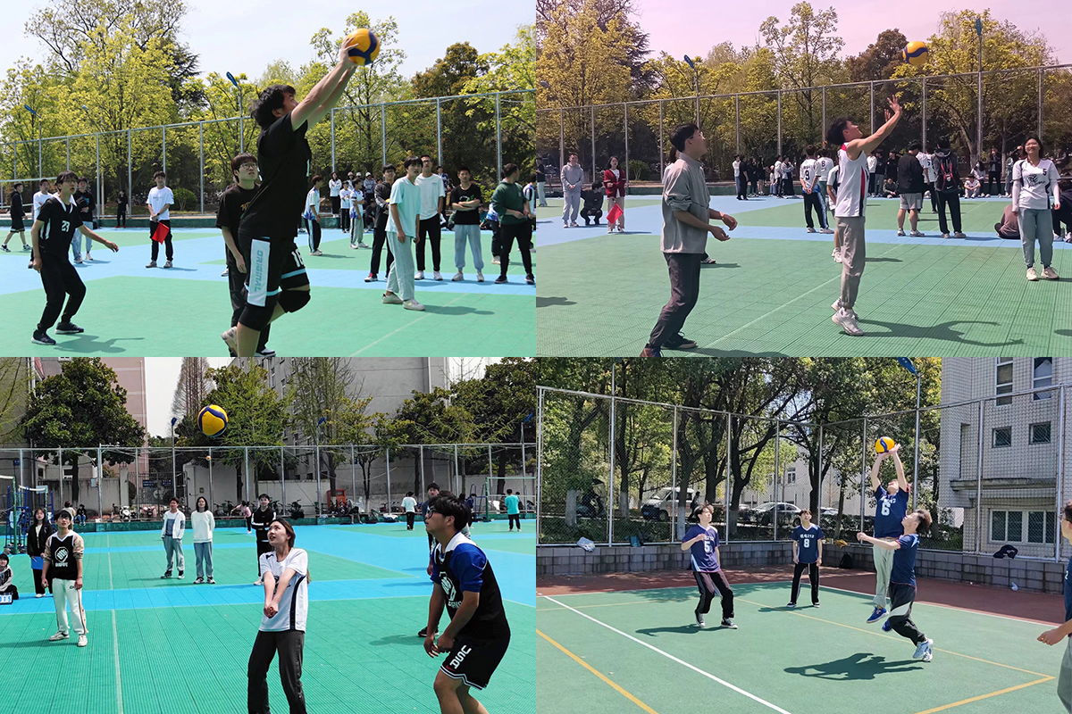 比赛中排球运动员们在赛场上充分发扬顽强拼搏、众志成城、坚持到底、永不言败的体育精神。他们在赛场上为救球竭尽全力、甚至冲出场外。面对失利,也毫不气馁、相互鼓励,为每一个好球击节叫好、相互拥抱。场外同学们“加油、加油”的呐喊声此起彼伏,响彻整个校园。