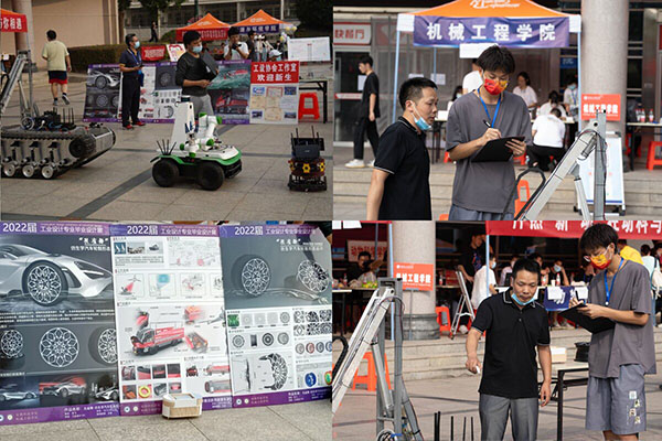 在西校区迎新现场,学院党委书记、院长陈丰等,陪同学校领导莅临参观了机械工程学院正在举办的科技作品迎新展览。本次展出的作品有全自动化的迎宾机器人,能够自动导航运送物品,也可为顾客提供语音导航服务;现场摆放着由机械工程学院研究生设计制作的智能移动底盘,可以在松软的泥土和台阶上如履平地作业,对搬运材料、进行基本采摘也是信手拈来。此外,现场还展出了工业搬运机器人和工业设计专业学长学姐们的毕业设计作品,充分展示了机械学科魅力和机械学子才智。