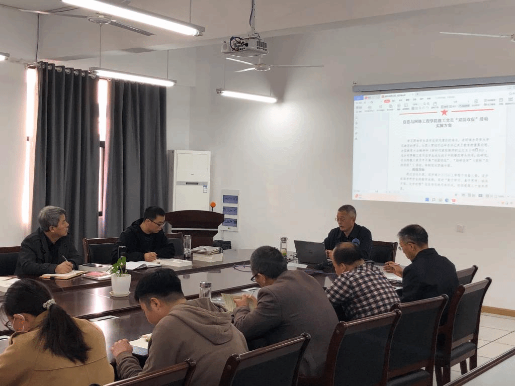 会上,王振其详细介绍了《信息与网络工程学院教工党员“双助双促”活动实施方案》,他强调,在教工党员中开展“助困促优”、“助研促学”(简称“双助双促”)活动是贯彻落实《中共华体平台委员会关于组织开展“基层党建质量提升年”活动的通知》要求和“一支部一特色”创建活动的重要载体,更是以实际行动贯彻落实党的二十大精神的重要举措。各教工党支部要高度重视,精心组织,确保活动顺利进行;要把教工党员在“双助双促”活动中的表现作为民主评议党员、年度考核和师德考核的重要依据;各教工党支部要真正发挥战斗堡垒作用,制定具体的执行计划,创造性地开展工作,确保活动取得实效。
