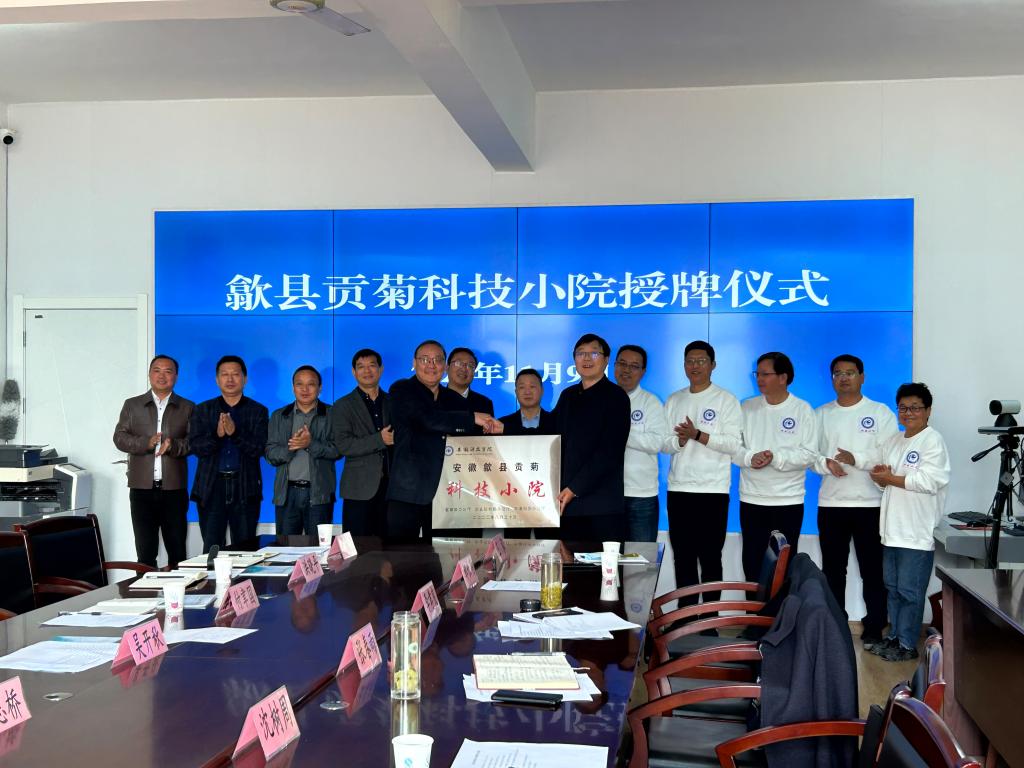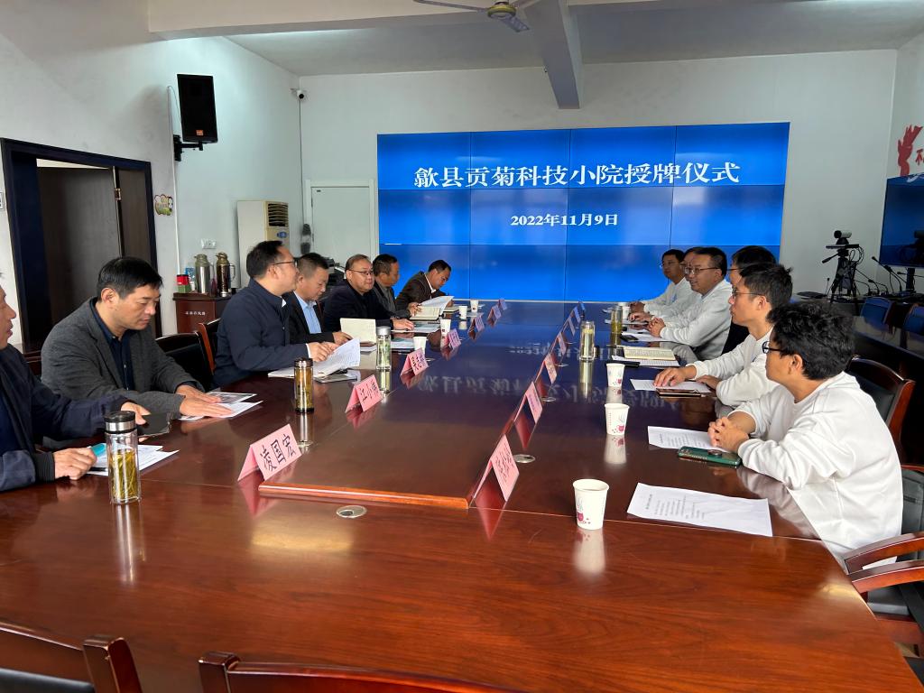为深入贯彻“产学研用”深度融合,推广科技小院研究生培养模式,助力乡村人才振兴,11月9日,“歙县贡菊科技小院”授牌仪式在歙县溪头镇举行。歙县农业农村局党组书记、局长吴开秋,歙县溪头镇党委副书记、镇长吴志桥,黄山济高生态农业科技发展有限公司董事长付聿国,校研究生处处长张春雨、资源与环境学院党委书记、院长李孝良,党委副书记、纪委书记沈树周及歙县贡菊产业相关专家、校贡菊科技小院相关成员参加授牌仪式。仪式由吴志桥主持。