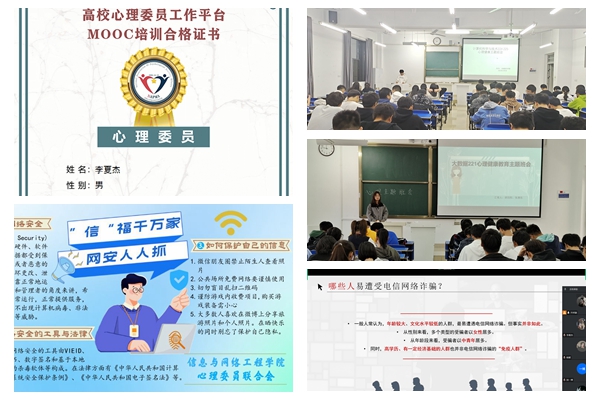 为进一步激发学生心理健康自我教育意识和心理调适能力,促进学生更好成长成才,信息与网络工程学院开展了“阳光心态 携手成长”心理健康月活动,本次活动由学院心理委员联合会主办。