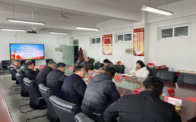汪建飞对梅局长一行来校交流表示热烈欢迎,他表示秸秆和畜禽养殖废弃物综合利用产业技术体系工作的一个重要方面,就是服务秸秆产业的高质量发展。在听取怀远县秸秆产业协会各成员企业提出的秸秆综合利用方面存在的问题后,他表示,怀远县是我校产教融合的大本营,怀远县农业农村局也是我校的密切合作单位。针对怀远县秸秆综合利用存在的技术瓶颈,汪建飞结合安徽省实际情况,针对秸秆肥料化、饲料化、基料化、原料化、燃料化的利用,从国家粮食安全、价格因素、市场新的增长点和需求变化、资源集约利用、高品质细分领域产品精准开发、农机农艺农信融合发展、科技助力、怀远秸秆标准制定、品牌打造方面,分析其中的矛盾关系,有效对接学校科技人才力量和重点实验室检测分析能力,打破现有瓶颈,重点从秸秆饲料化、肥料化高质量利用等方面提出解决对策和技术路径,实现怀远秸秆产业的高质量发展,助推怀远县秸秆综合利用产业在安徽省较大影响力的基础上,取得更大进步。