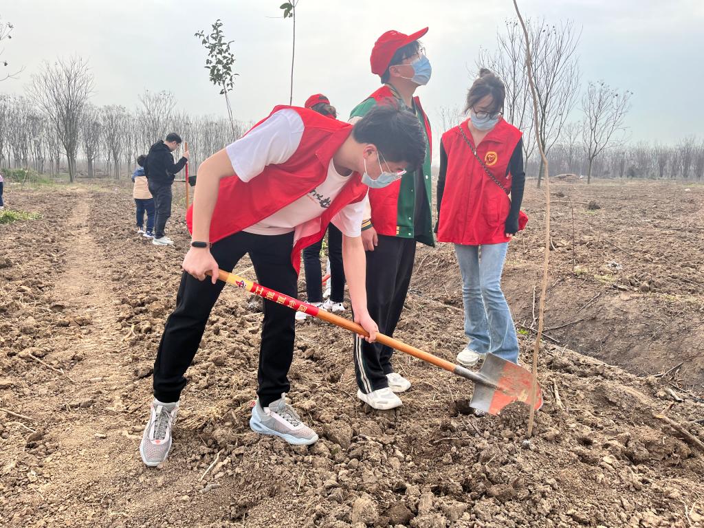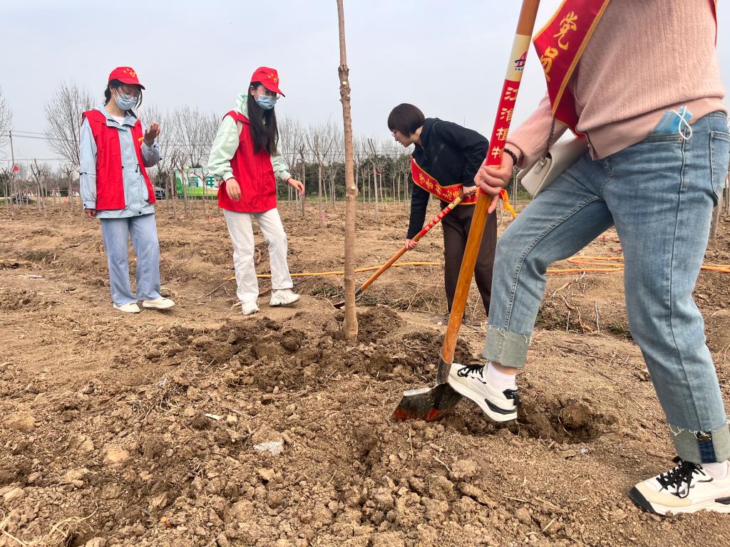 随后,志愿者们穿上志愿者马甲分成两组,带着树苗、铁锹等工具,来到划定的植树区域,在林业技术人员的指导下,分工协作、共同配合。挖坑、扶苗、培土……各个环节衔接有序,他们把手中的一颗颗的树苗植入大地,同时也把热爱自然的希望植入了心中,为大地增添了更多的生命活力。经过近3小时的忙碌,百余棵树苗在春日下迎风挺立。