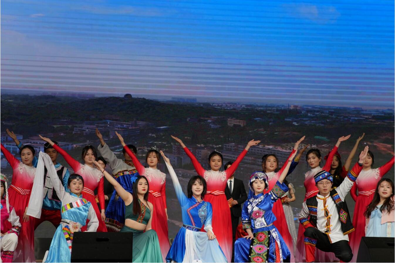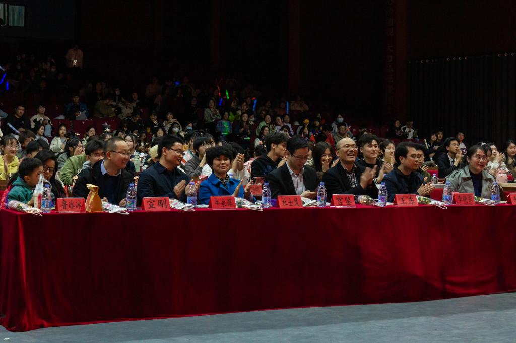 开幕式后,同学们精心准备的文艺节目精彩呈现。歌曲串烧中,演员的精彩演唱赢得了阵阵掌声,《霜雪千年》融合了中国传统舞蹈和现代舞蹈元素,深刻体现了爱情和人生的美好与悲壮;小品《“典”亮我家》以幽默风趣的表演,引得全场哈哈大笑;曲调优美、旋律悠扬的《琵琶语》切实展现了民乐的魅力和神韵……晚会最后,一首《读中国》在演员们倾情朗诵中完美落幕。