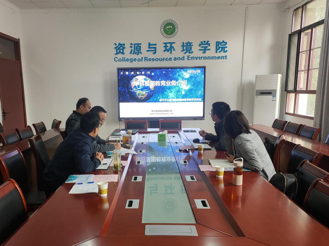 为推进校企合作、促进学科发展,3月23日上午,中科星图股份有限公司数字地球政企事业部副总经理闫士涛、高教业务部负责人高葵受邀到资源与环境学院考察交流,洽谈产学研合作事宜。会议由资源与环境学院党委书记、院长李孝良主持,党委副书记、纪委书记沈树周、副院长邹海明、地理信息科学实验教学中心主任鲁立江和专业教师刘吉凯出席会议。