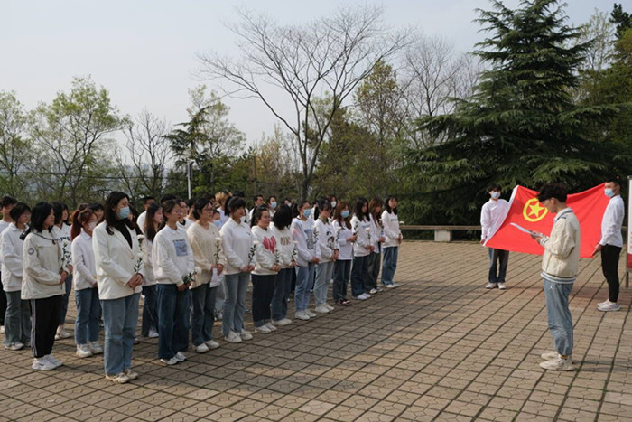 在烈士纪念碑广场,大家整齐肃穆列队,面对高大雄伟的烈士纪念碑,怀着无比崇敬的心情向革命先烈默哀、鞠躬。校优秀共青团员代表、财管213班团支书吕宝财带领在场团员重温入团誓词,进一步坚定理想信念,继承英烈遗志,赓续红色血脉。
