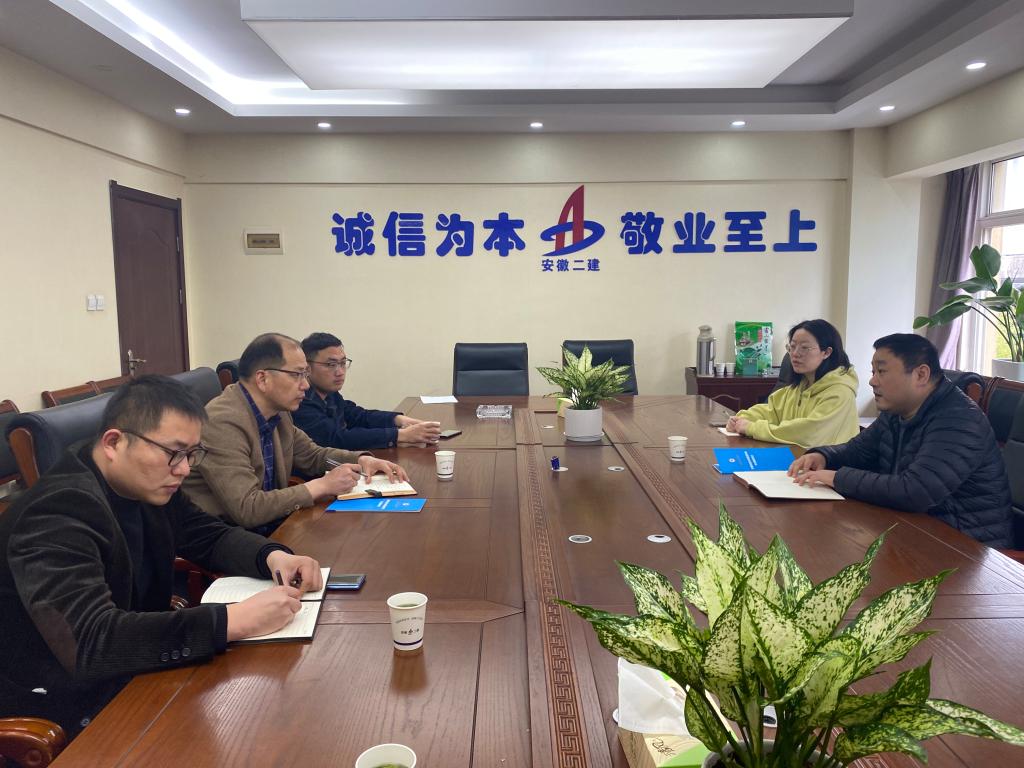 31日上午,丁景良一行来到安徽省第二建筑工程有限公司,受到公司人力资源总经理彭涛的热情接待。座谈会上,彭涛总经理对安徽二建公司的发展历程、组织架构、个人发展和薪资待遇了简要介绍,表示期望同管理学院在实习实训,就业岗位开发方面展开深度合作,促进学生在国企高质量就业。丁景良简要介绍了学校的基本情况、办学历程、办学定位和“十四五”的发展规划,详细介绍了管理学学院的专业设置,毕业生就业去向等情况。双方还围绕人才培养、校企合作模式等方面进行了探讨交流,为深化双方的合作达成了共识。