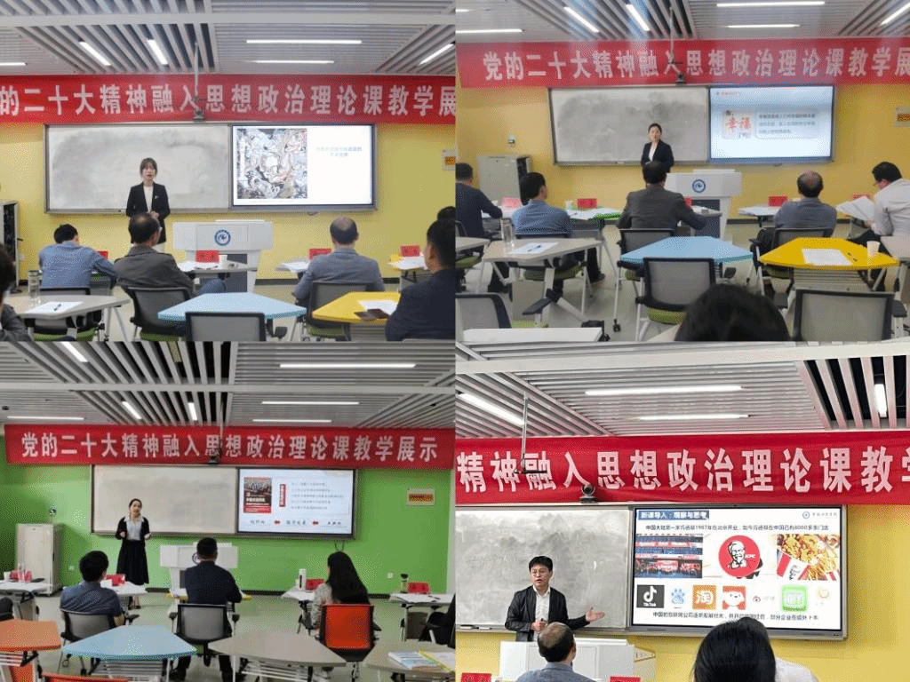 为深入贯彻落实党的二十大精神,扎实开展学习贯彻习近平新时代中国特色社会主义思想主题教育,4月19日,马克思主义学院在求知楼智慧教室303、307举行“党的二十大精神融入思想政治理论课教学展示暨青年教师教学竞赛”活动。竞赛评委由校内外专家组成,马克思主义学院党政领导出席活动,学院全体教师到场观摩学习。