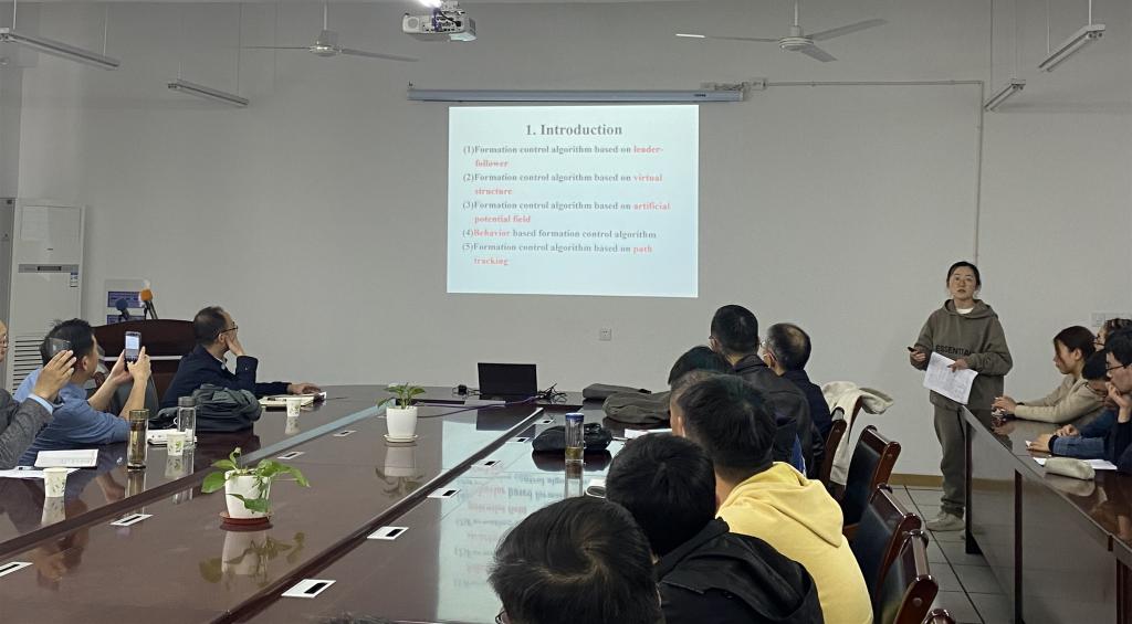 随后,齐雪博士做了题为《多机器人编队协调控制方法及应用》的学术报告,介绍了多机器人三维编队控制方法及应用场景,给出了水下机器人虚拟结构坐标系及运动学和动力学模型,并通过仿真实验验证了控制方法的有效性。李锐博士作了题为《基于离散Gabor变换的信号稀疏时频表示及其应用》的报告,介绍了如何将稀疏优化理论应用于离散Gabor变换,给出了基于离散Gabor变换的信号稀疏时频表示的优化算法,有效提高了Gabor时频谱的分辨率和集中度,从而使其更加有效地应用于非平稳信号。王继斌博士做了题为《基于相关函数度量特征的房颤自动检测算法研究》的报告,介绍了一种基于小波包变换和相关函数度量特征的房颤自动检测算法,同时指出相比于多个现有算法,所提策略对于房颤信号具有更卓越的检测性能。