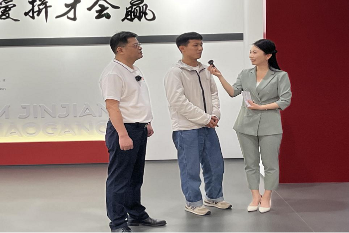 现场,学生代表汪礼伟接受了主持人的采访,喜悦之情溢于言表,他很自豪地说:“我来自华体平台食品工程学院,今天学校组织我们参与此次活动,使我受益匪浅,小岗盼盼食品有限公司规模大、产品线全、研发实力强,让我更加了解了食品产业的工作环境,我也希望能有机会留下来。”