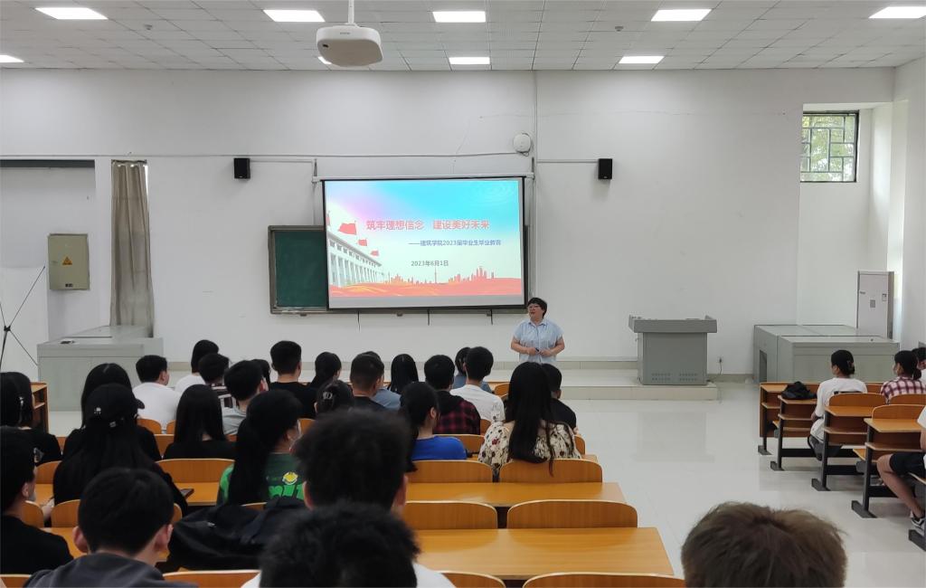 为进一步加强毕业生教育,确保毕业生安全文明离校,5月31日至6月2日,建筑学院开展了2023届毕业生毕业教育,学院党委副书记、纪委书记谢宜勤主讲,毕业班辅导员、全体毕业生参加。