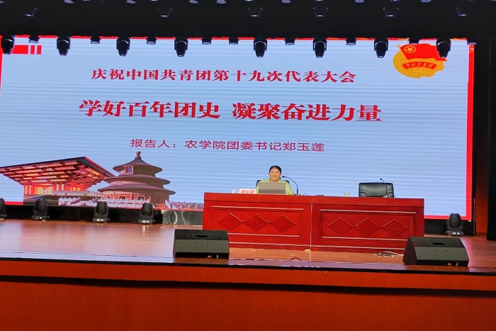 农学院团委书记郑玉莲应邀作开班第一讲,“学好百年团史,凝聚奋进力量”专题报告。报告从“在革命性磨砺中奋进的中国共青团”“新时代中国青年的使命担当”“组织青年争当中国式现代化建设的主力军”和“汇聚起构建人类命运共同体的青春力量”等四个方面对中国青年运动进行了阐述,对团的十九大精神进行了解读。郑玉莲表示,入团积极分子要坚持以习近平新时代中国特色社会主义思想为指导,自信自强、守正创新,踔厉奋发、勇毅前行,争做有理想,敢担当、能吃苦、肯奋斗的新时代好青年,坚定不移听党话、跟党走,让青春充满真理,让真理在青春的奋斗中迸发更强劲的力量。