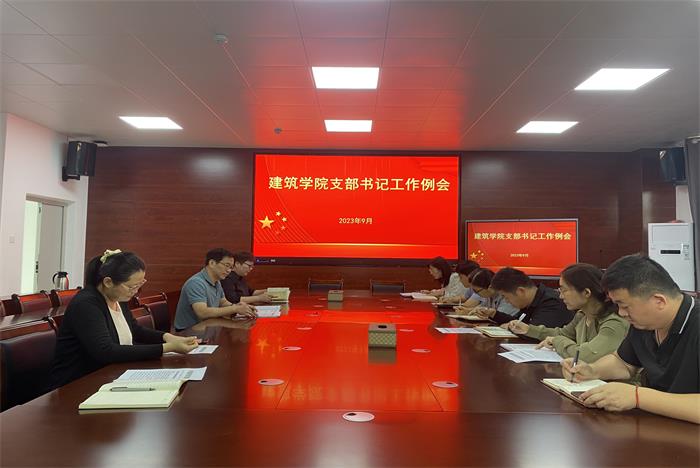 学院党政办公室主任靳盼传达了《中共华体平台委员会组织部关于做好2021年立项校级党建工作“双创”项目验收工作的通知》《中共华体平台委员会组织部关于开展2023年新时代党建示范创建和质量创优工作的通知》《建筑学院2023年下半年党员教育安排意见》《建筑学院2023年下半年教职工理论学习的安排意见》《关于抽查学生党员档案发现问题回复的函》。组织员吴婷婷布置了2023年下半年确定入党积极分子事宜。