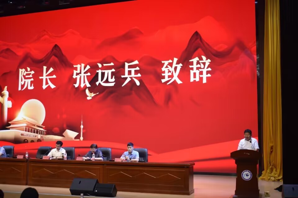 院长张远兵致辞。他代表学院全院师生向2023级新生的到来表示热烈欢迎。他简要回顾了学院的办学历程和发展成就,重点讲解了学院的专业建设、师资力量、教学科研、学生就业、校园文化等情况;同时,他寄语新同学们要坚定不移,树立远大志向,做好人生规划;珍惜宝贵的学习时间,求真学问,练真本领,完善知识体系、提高综合实力,努力成为可堪大用能担重任的栋梁之才。