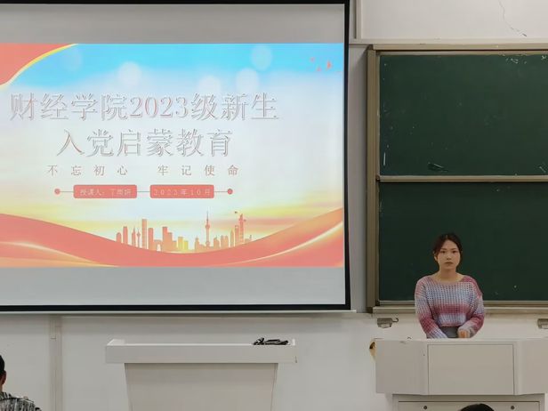 为切实加强新生对党的认识和了解,提高新生思想政治觉悟,引导新生坚定理想信念,端正入党动机,积极向党组织靠拢,10月11日起,财经学院组织开展2023级新生入党启蒙教育培训会,学院各专业学生党支部书记主讲,2023级全体新生分专业参加培训会。