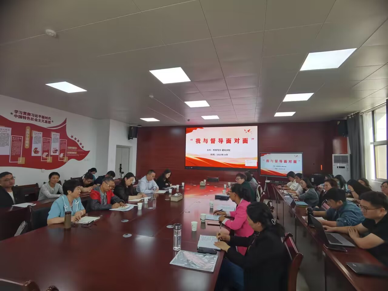 为高质量迎接本科教育教学审核评估工作,深入掌握教风学风动态,增进教师、学生之间的沟通交流,推动教师教育教学能力和水平持续提升,进一步加大二级学院教学督导指导。10月18日下午,督导考核公室与建筑学院联合开展“我与督导面对面”专项督导交流会。建筑学院有关党政领导、督导考核办公室有关工作人员和建筑学院全体授课教师参加会议。会议由建筑学院党委副书记谢宜勤主持。