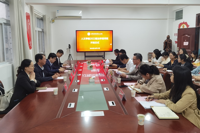 10月19号下午,人文学院2022级法学“淮河班”开班典仪式在学知楼324室举行。出席开班典礼的有安徽淮河律师事务所主任张林、副主任尹现波、合伙人马龙、青工委主任张小曼、工会主席叶磊;人文学院党委副书记、副院长(主持工作)李晓东,正处级组织员张严政、副院长牛永辉、党委副书记李沙娜、法学系主任张晓云、“淮河班”班主任鲁冰冰以及“淮河班”全体同学。开班典仪式由张严政主持。