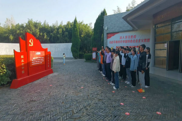 在纪念馆门口,两个支部党员重温入党誓词,深切缅怀老一辈革命家的光辉伟绩,感悟共产党人的初心使命。全体党员纷纷表示要以习近平新时代中国特色社会主义思想为指导,深入学习宣传贯彻党的二十大精神,传承红色基因,发扬优良传统,立志做有理想、敢担当、能吃苦、肯奋斗的新时代好青年,以更加饱满的精神状态,为学校本科教育教学审核评估和更名大学作贡献。(特约通讯员:王传林 摄影:薛蕾 陈鹏 赵佩岚 审核:张传德 编辑:李锦)