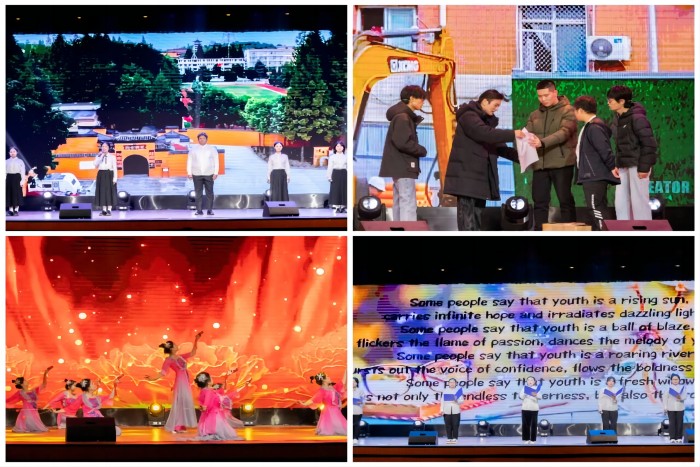 闭幕式晚会节目形式丰富多样,内容积极向上,编排富有创新,通过不同的表演形式,彰显大学生青春风采,为在场的观众献上了一场视听盛宴。独具特色的话剧《最美校长》以优秀校友扎根基层教书育人的先进事迹而改编,阐释了师德与师风内涵。动感十足的舞蹈展现当代安科学子的青春活力,动听的英文歌曲彰显了英语的独特魅力和专业特色,精彩的相声充分调动现场活跃气氛,留学生倾情献唱歌曲《Lean on me》表达了对中华优秀文化的热爱。演员们用精湛的表演赢得在场观众的一致认可,掌声不断,气氛热烈。