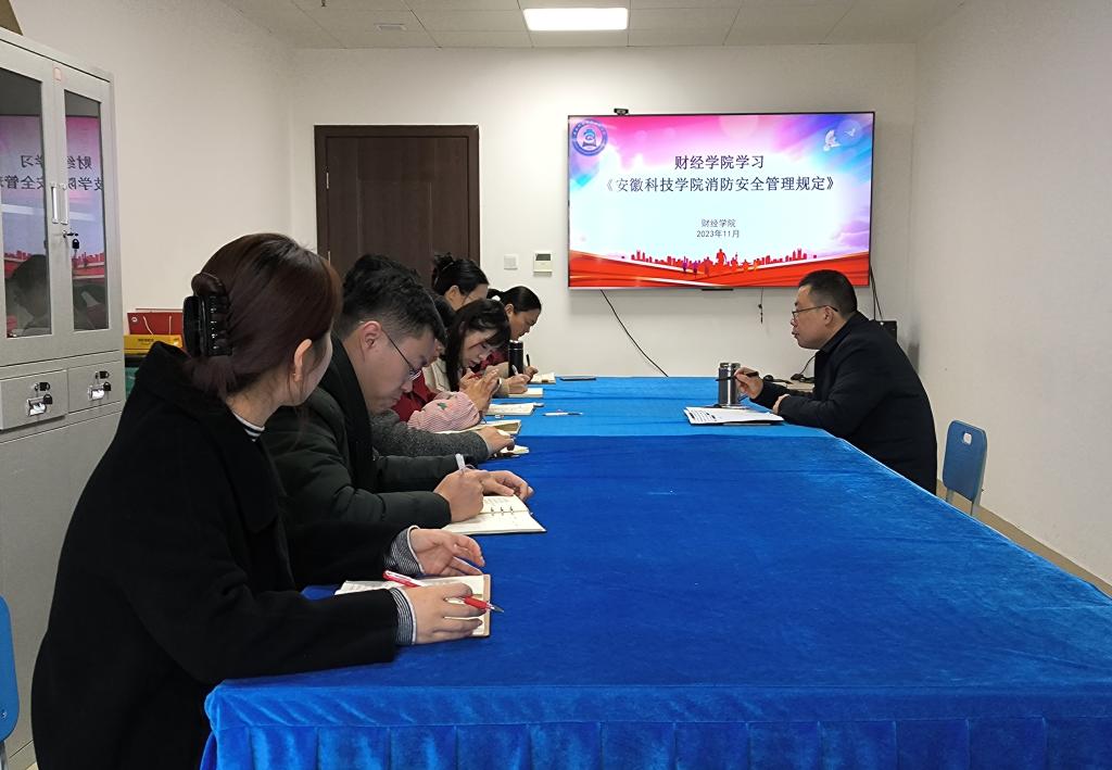 学习法律法规,指导工作实践。11月20日,财经学院全体辅导员在西附楼212会议室学习《华体平台消防安全管理规定(2023年修订)》,会议由学院党委副书记耿广汉主持。会上,辅导员共同学习了文件中和学院消防工作相关的内容,涉及消防安全责任、消防安全管理、消防安全检查和整改、消防安全教育和培训、灭火、应急疏散预案和演练等内容,指导辅导员在日常工作中教育引导学生防范消防安全隐患。