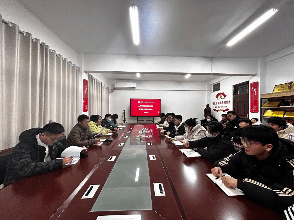 12月13日,人文学院在学知楼324会议室召开学风建设推进会暨诚信文明考试动员会。学院党政领导、全体专职辅导员出席,各班级班长和学习委员参加,会议由团委副书记焦雪松主持。