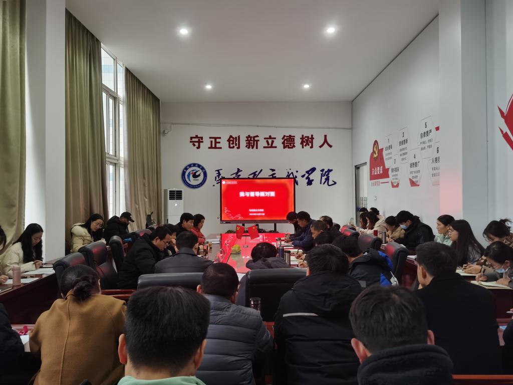 为了切实提升马克思主义学院青年教师教学能力,提高思想政治理论课课堂教学质量,12月13日下午,学院在学院会议室开展了“我与督导面对面”活动。活动邀请校督导考核办公室主任王培章,校督导员张雪梅、陆山花等专家现场指导。学院党总支书记杨仕勇和青年教师参加,活动由院长张德化主持。