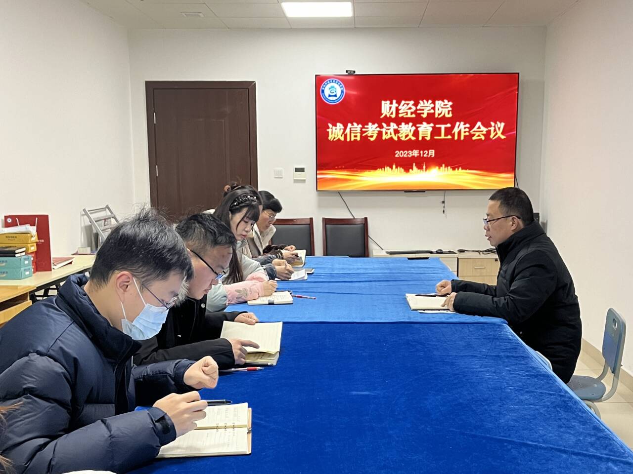 12月29日-1月4日,各班级辅导员召开考风考纪专题班会,督促学生认真复习迎考,遵守校规校纪,诚信文明考试。各班级签订“诚信考试 杜绝作弊”承诺书。