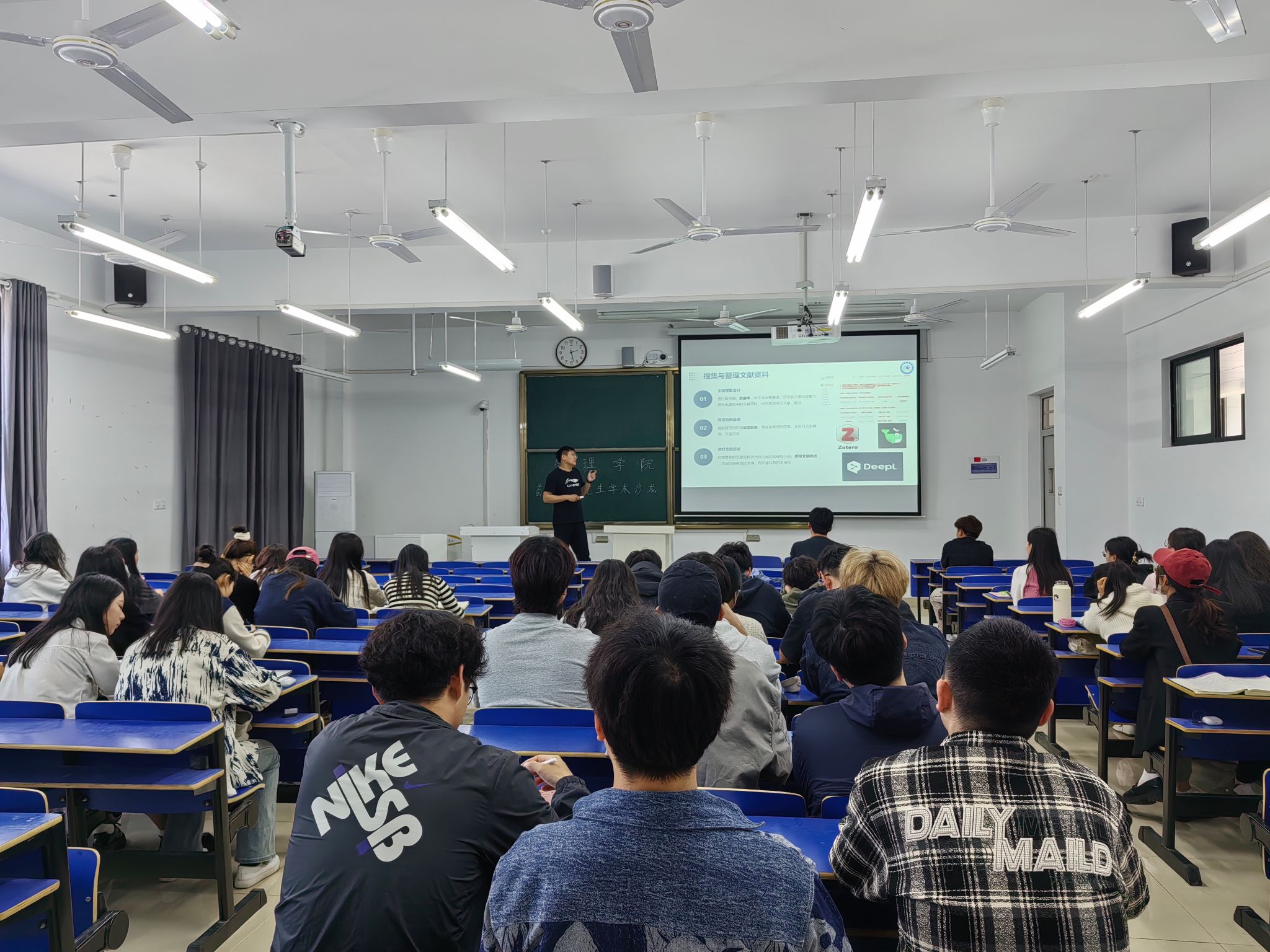 魏有文主要从论文写作的前期准备、写作技巧和心得体会三个方面展开分享。他认为论文写作前的充分准备是确保论文质量的关键,在确定研究方向与选题时,应结合自身的研究兴趣、导师团队的研究领域及研究价值与意义定写作方向。他将不同文献类型作为切入点,从综述、研究、方法等角度告诉同学们如何把握不同的文献类型的相关研究领域最新发展趋势。在谈到论文写作技巧与方法时,魏有文认为制定合理的写作计划、构建文章写作框架都是非常重要的。会后,研究生们围绕论文写作、期刊投稿等话题进行了深入交流。