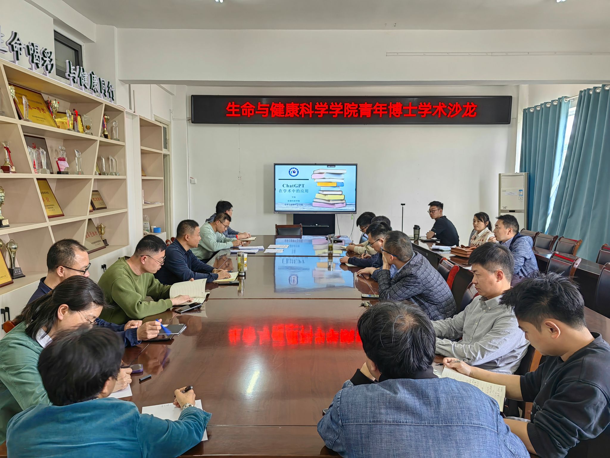 艾强、李先强、王锐三位博士结合研究方向分别进行了学术交流研讨报告。其中,艾强以《人工智能在学术中的应用》为题,着重介绍了ChatGPT的发展历程、应用范围以及具体使用方法,为教师开展学术研究提供了极大帮助;李先强以《中药“老药新用”高效增效肿瘤疫苗》为题,介绍了新型制剂技术提升中药在重大疾病上的应用,着重阐明外泌体作为免疫佐剂提高肿瘤疫苗的临床药效,为肿瘤药物研发提供了新思路;王锐以《中国近海浮游纤毛虫原生动物多样性研究》为题,介绍了纤毛虫的分布及种类,详细分享了其发现纤毛虫新属的科研经历,为生物多样性的探索与物种分类研究开辟了新视野。
