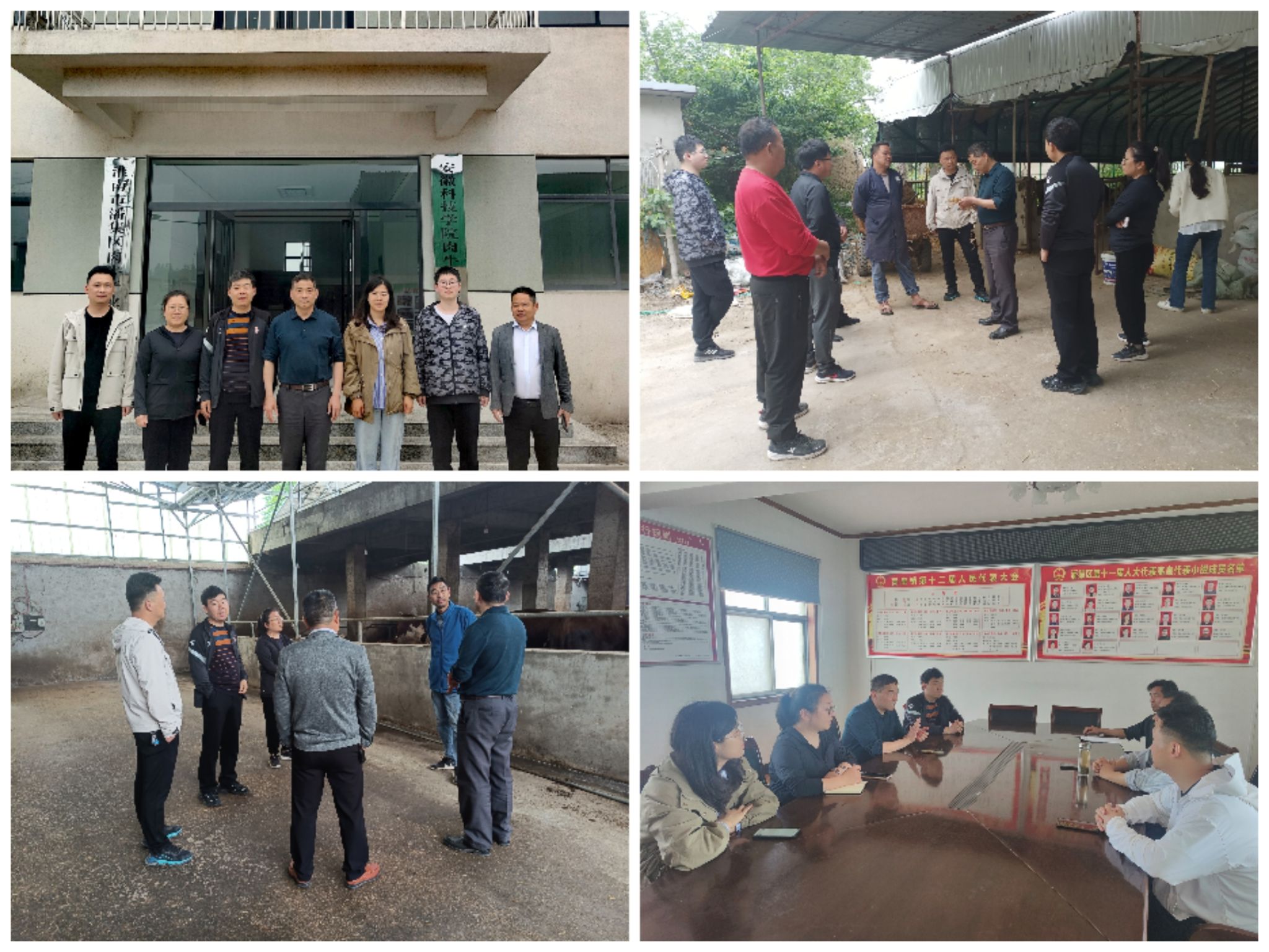 为加快推进我校与潘集区人民政府已谋划落实的肉牛产业创新研发项目实施,4月27日至28日,动物科学学院庞训胜教授协同项目组成员李文超教授、胡倩倩副教授、王世琴博士等一行5人,赴潘集区开展实地调研,在区农业农村局主要领导和畜牧兽医服务中心主任朱亮等同志的陪同下,深入乡镇一线肉牛养殖场,开展技术服务和项目实施工作交流。