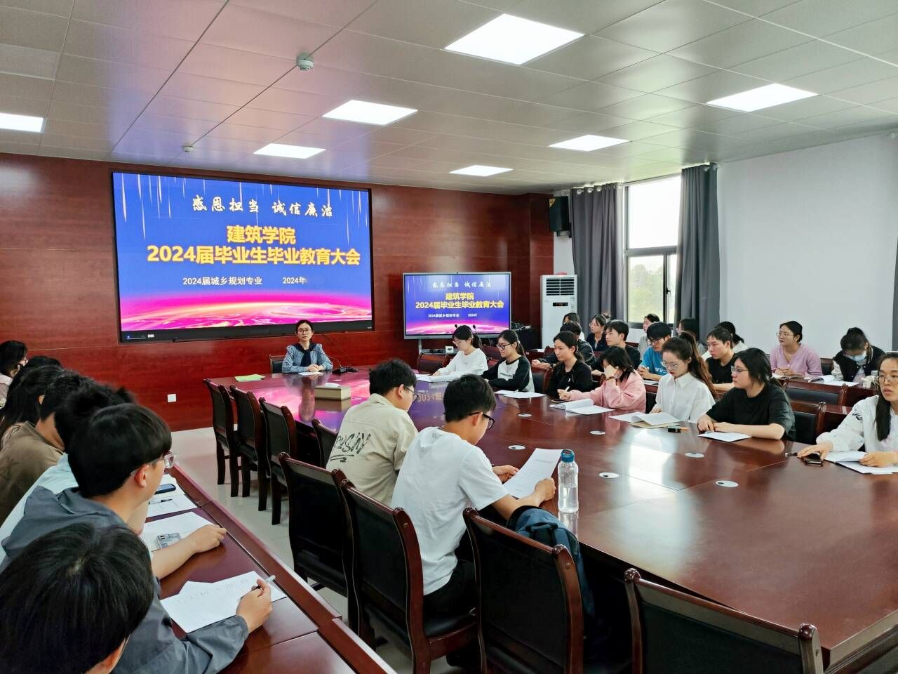 为加强毕业生教育,确保毕业生文明安全离校,6月初,建筑学院开展了2024届毕业生毕业教育,毕业班辅导员、全体毕业生参加。