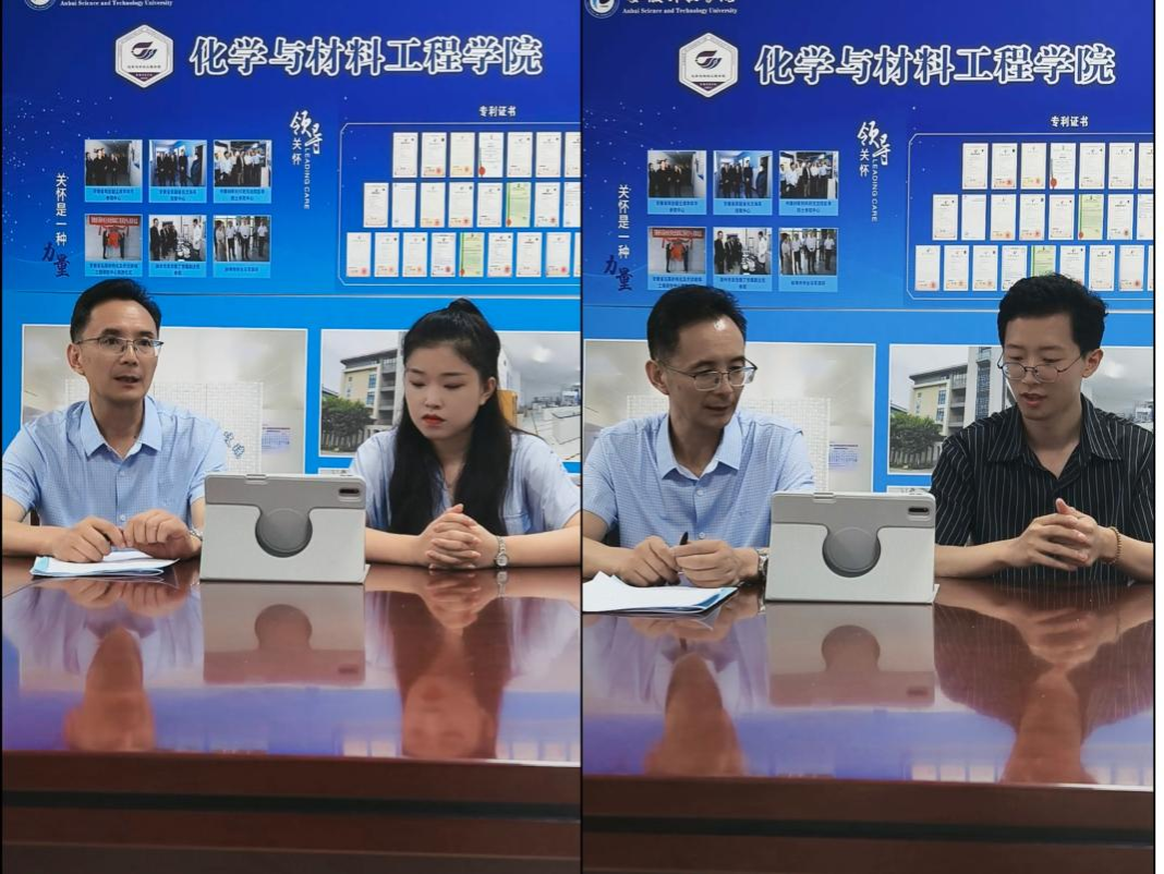 线下招生如火如荼,线上宣传也紧跟脚步。6月27日,化学与材料工程学院在抖音平台举行了招生宣传直播。院长李子荣、辅导员路润麟和贾江旭参与了此次直播。直播期间,大量考生以及家长进入直播间咨询志愿报考事宜,李子荣和两位辅导员则一一给予耐心解答,同时对校园环境、学院师资、科研教学、专业前景等方面内容进行了介绍。本次直播观看人数共计1619人,取得了考生和家长的一致好评。