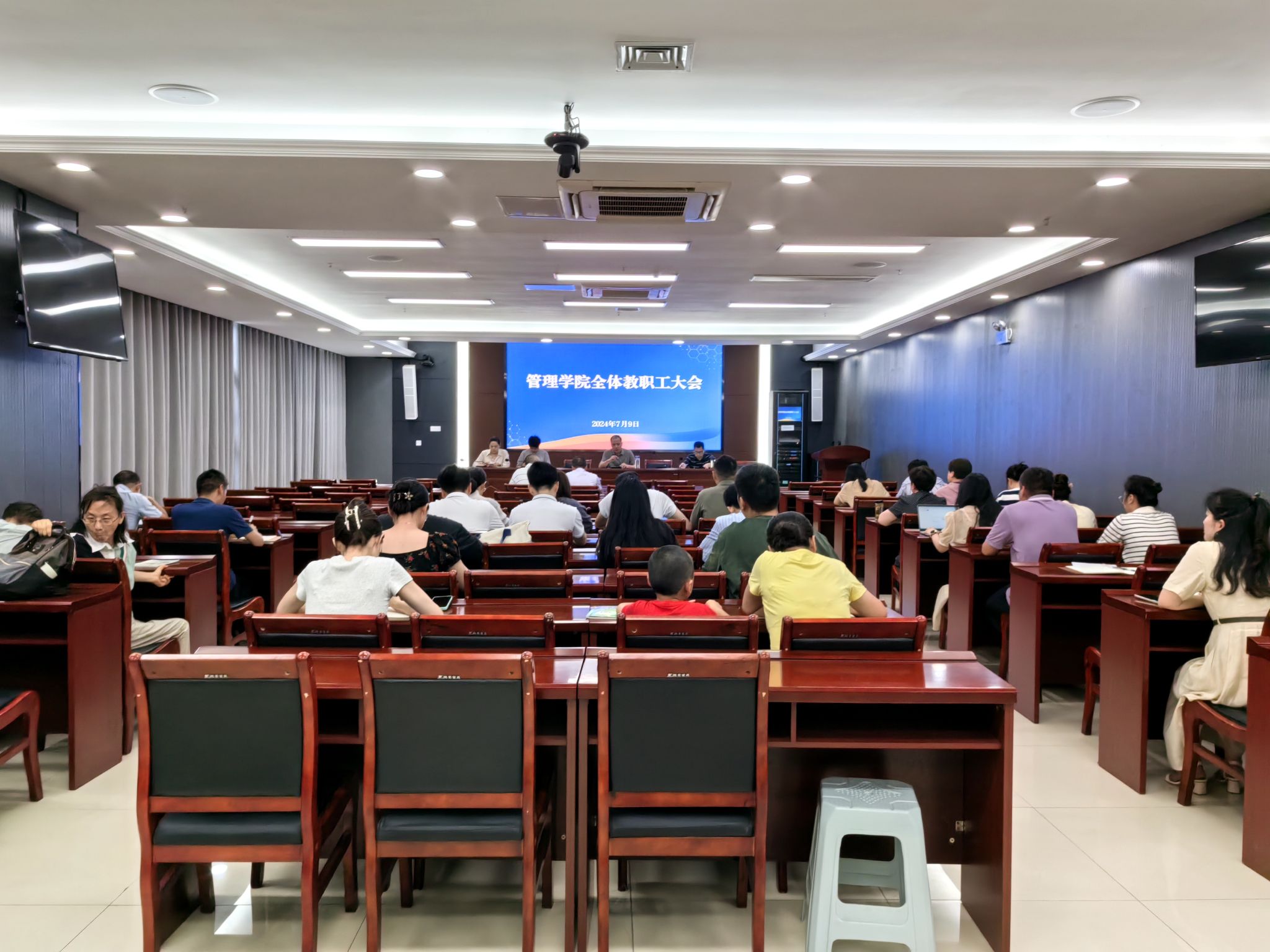 为切实推进暑期各项重点工作有效落实,7月9日下午,管理学院在西附楼111会议室召开全体教职工会,部署暑期工作。学院党政领导及全体教职工参加会议,会议由学院党委书记丁景良主持。