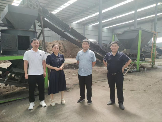 在阜阳市义丰肥业有限公司实地考察有机肥生产线期间,企业生产部负责人李艇向调研组详细介绍了公司有机肥堆肥工艺及设备、产品造粒成型技术和装备、销售和综合利用等情况,并针对企业生产过程关键装备改进、产品质量提升、生产过程减排等多方面问题向调研组开展了咨询和交流。