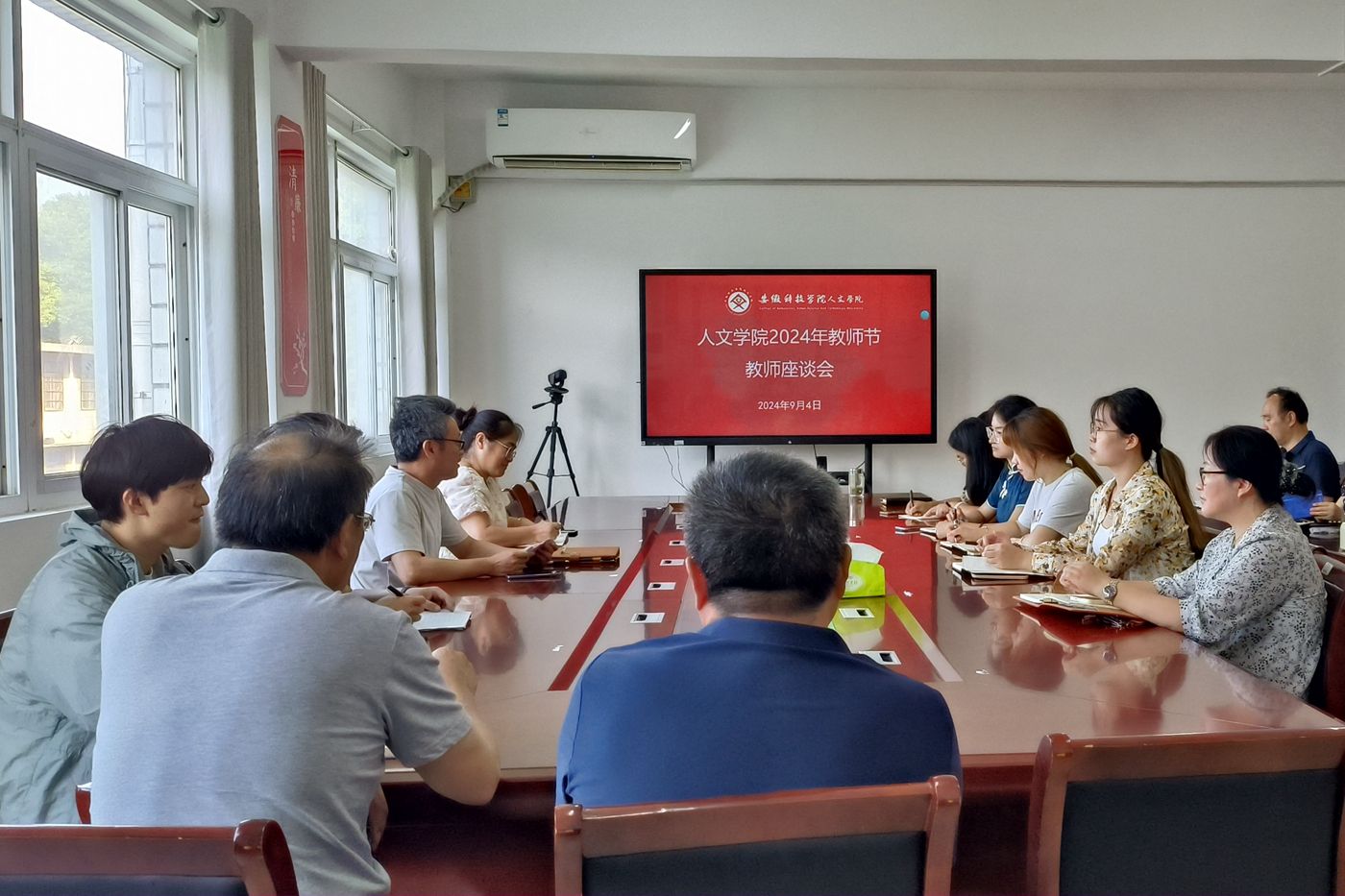 为进一步营造尊师重教的浓厚氛围,切实加强师德师风建设,根据学校部署,9月4日下午,人文学院在学知楼324会议室召开庆祝2024年教师节教师代表座谈会。学院党政领导、高层次人才、近两年新进教师以及各系、教研室主任参加座谈会。会议由正处级组织员张严政主持。