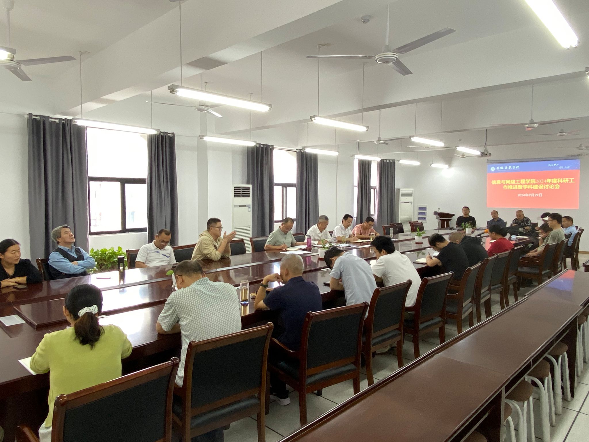 为了深入推进学院科研与社会服务工作,加强学科建设,确保尽快完成2024年度目标管理考核的关键指标,提升学院学科实力与竞争力,9月29日上午,信息与网络工程学院在尚行楼B418召开了科研工作推进暨学科建设讨论会。学院党委书记王振其,院长余宏杰,副院长何恩节、曹浩,全体博士、副高及以上职称教师参加会议,会议由何恩节主持。