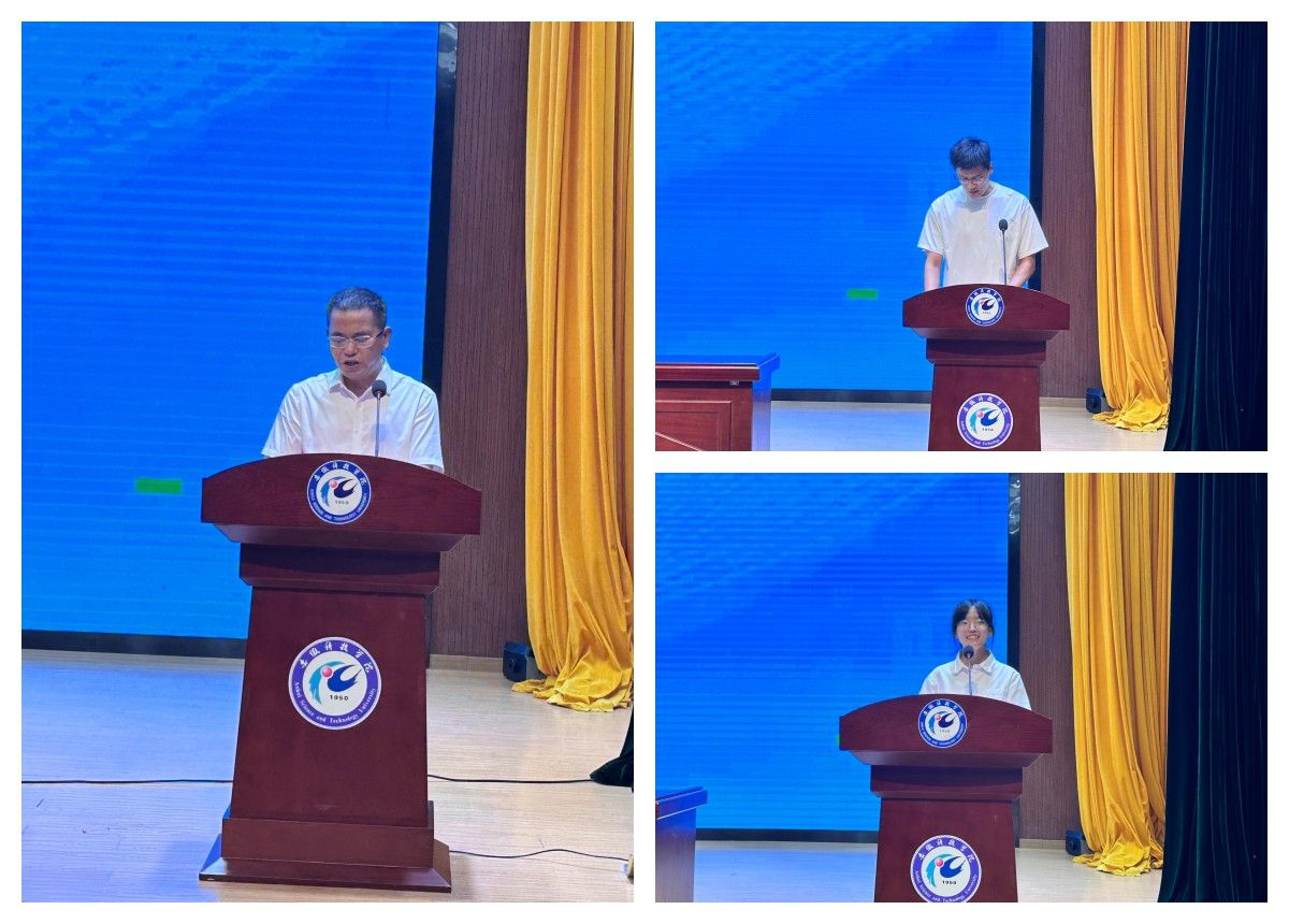 会上,骆海邦代表学院党委向2024级新生表示亲切的慰问和热烈的欢迎。他对新生提出了几点要求:一是遵守纪律,养成良好习惯。不断培养良好的学习习惯和生活习惯,使大学生活充实又丰富多彩。二是勤奋学习,提升学业水平。在知行合一的实践中练就过硬本领。三是珍惜时光,做好人生规划。要树立远大理想抱负,明确人生目标方向,勤奋努力,不懈追求。四是成长成才,促进全面发展。积极参与体育锻炼、文化活动和社会实践,努力成为德智体美劳全面发展的时代新人。