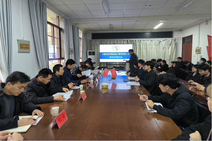 11月19日下午,食品工程学院在东办公楼110召开第三次研究生代表大会。学院党委书记付光玺,副院长翟立公出席大会。会议由研究生分会主席团成员崔海鹏主持。
