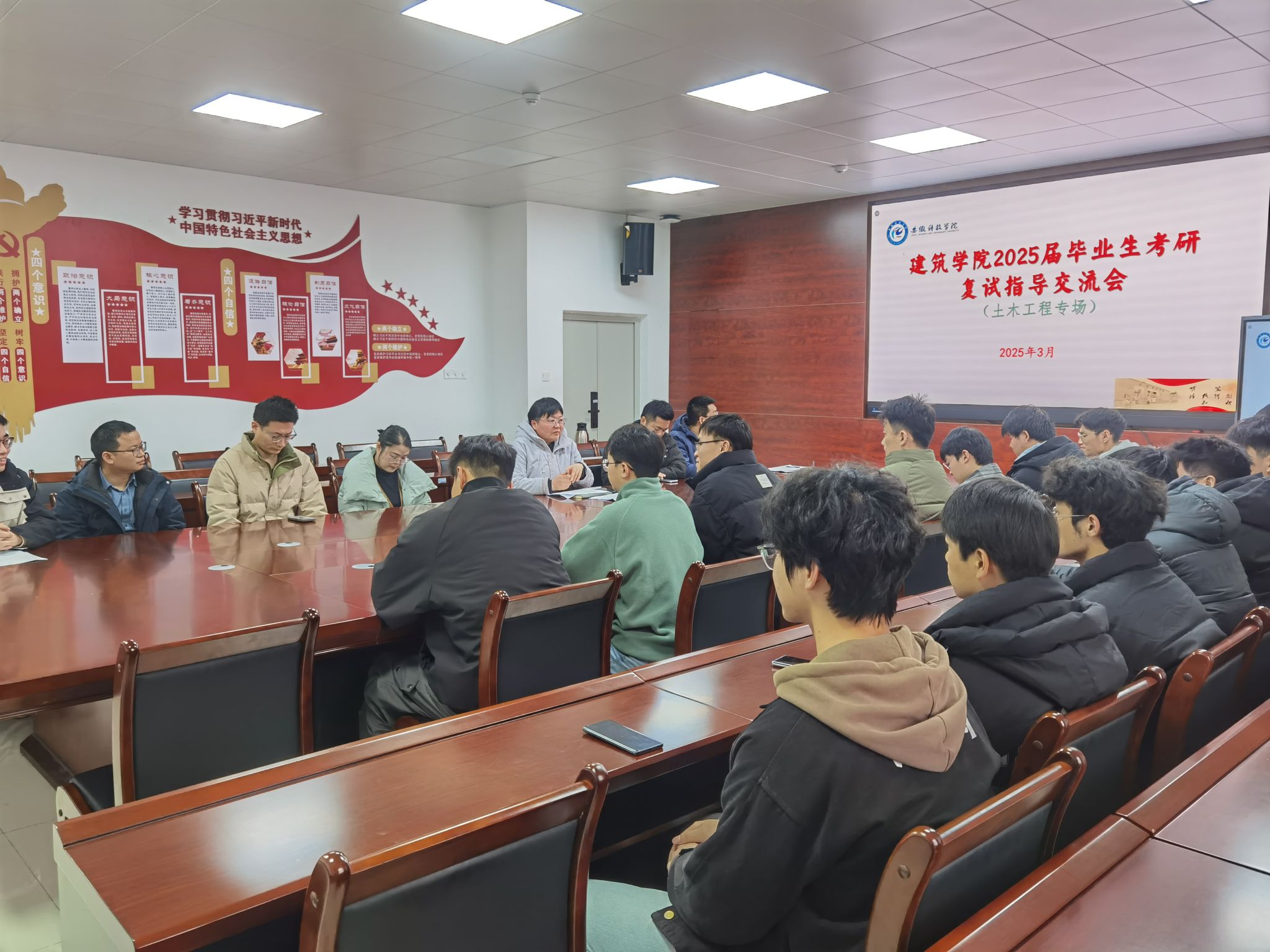 为助力考研学子高效备战复试,提高毕业生考研录取率,3月11日至12日,建筑学院分专业组织开展了考研复试指导交流会。学院党政领导、各教研室老师、毕业班辅导员及全体过国家线考研学生参会。会议由学院党委副书记谢宜勤主持。