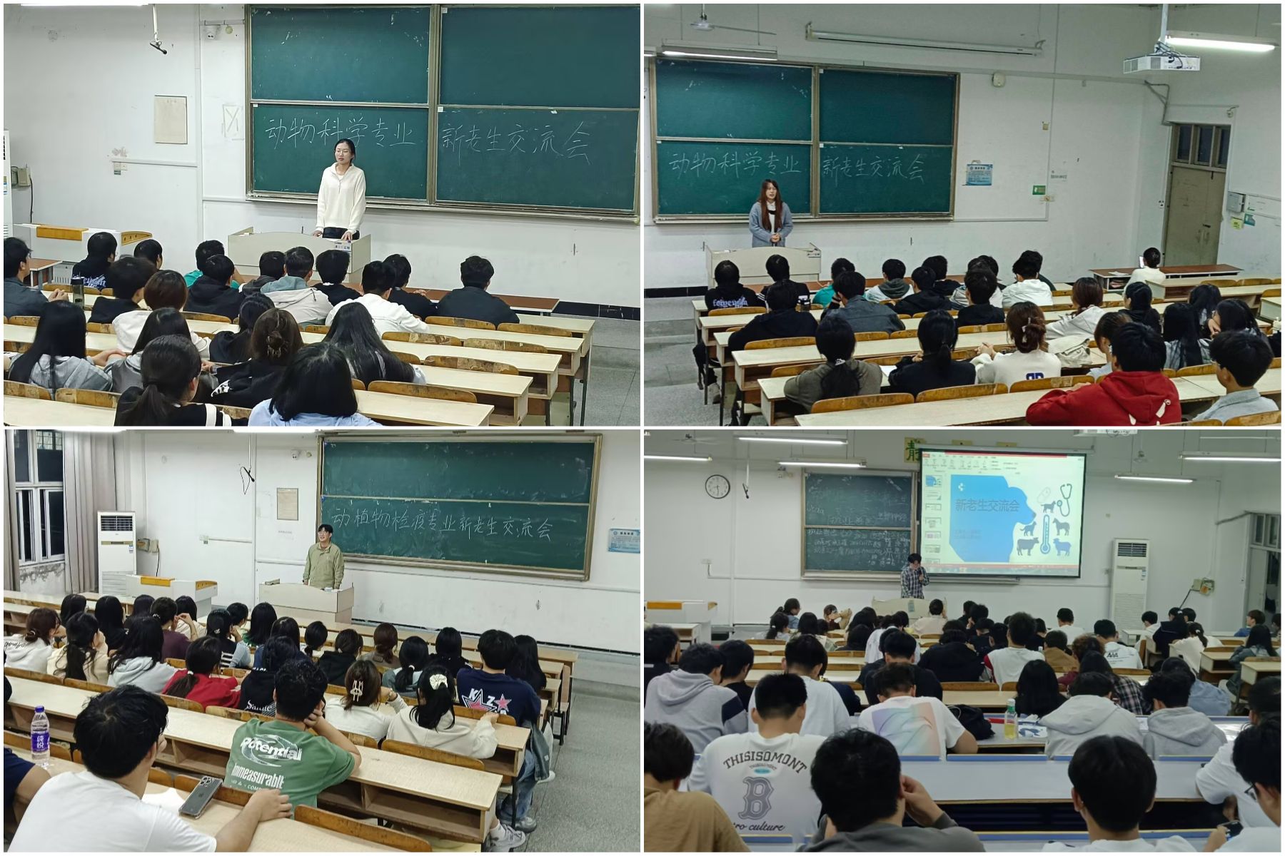 为助力2025级新生尽快适应大学生活,深入了解所学专业,明确学业规划,10月16日,动物科学学院分别于求知楼A栋104、205、204教室举办动物医学、动物科学、动植物检疫专业新老生交流会。交流会特别邀请国家奖学金获得者、学科竞赛与创新创业比赛能手、优秀学生党员等多位高年级学生代表传授学习成长经验,2025级全体新生参加交流会。
