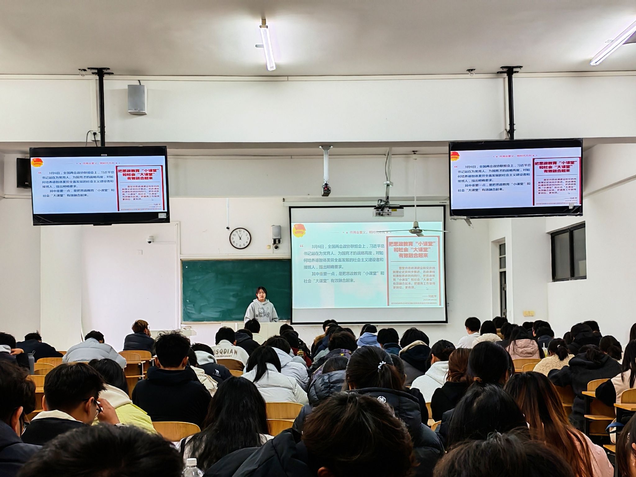 培训以“从团员到预备党员”的成长经历为切入点,围绕“青春与信仰”这一主线展开分享,解读了全国两会提出的“推动思政小课堂与社会大课堂深度融合”的要求,结合建筑学科特点,阐明课堂所学与国家重大工程建设之间的内在联系。主讲人讲述了自己参加大学生讲思政课比赛的经历,从“敢担当”组建团队,到“能吃苦”利用假期备赛,再到“肯奋斗”反复打磨讲稿与呈现细节,生动展现了青年学子在实践中淬炼本领、实现蜕变的成长轨迹。