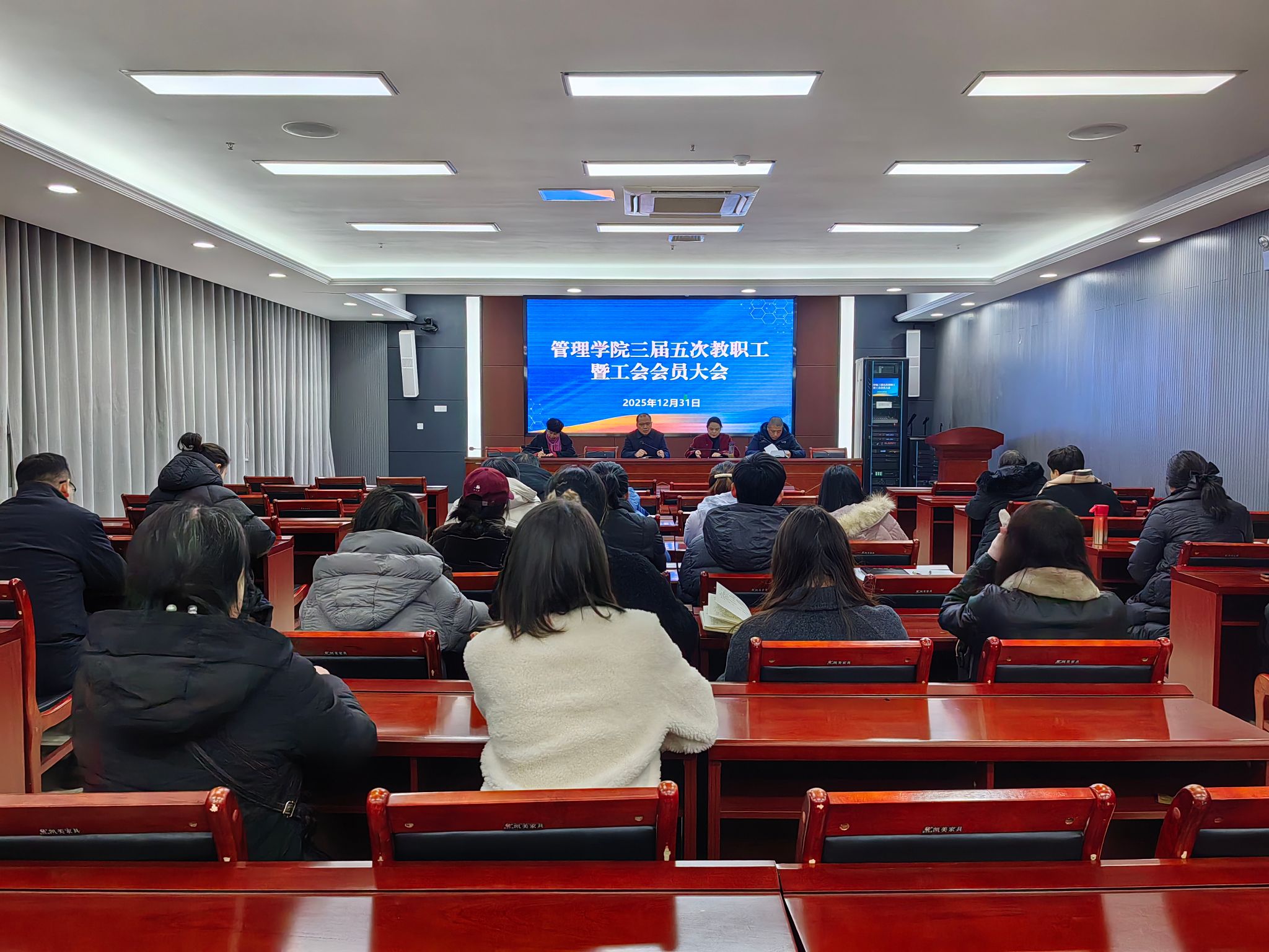 12月31日下午,管理学院在龙湖校区西辅楼111会议室召开三届五次教职工暨工会会员大会,学院党政领导出席会议。会议由学院党委书记丁景良主持。