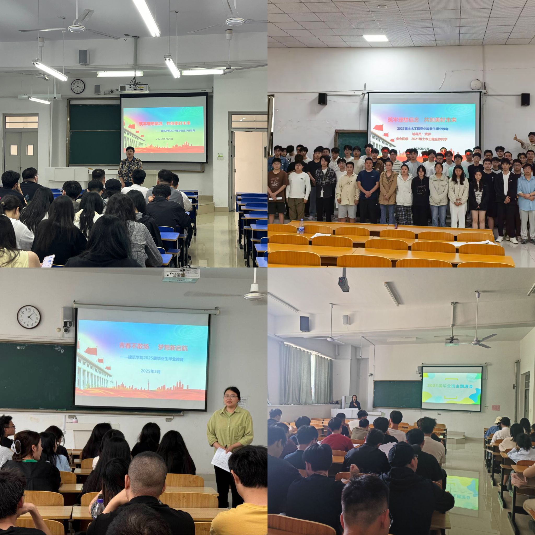 为加强毕业生的思想政治教育,营造积极向上、安全和谐的毕业离校氛围,5月中下旬,建筑学院开展了2025届毕业生毕业教育,毕业班辅导员、全体毕业生参加。