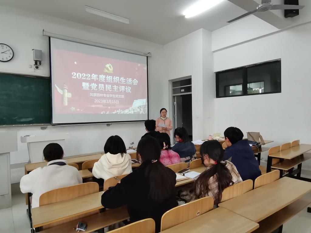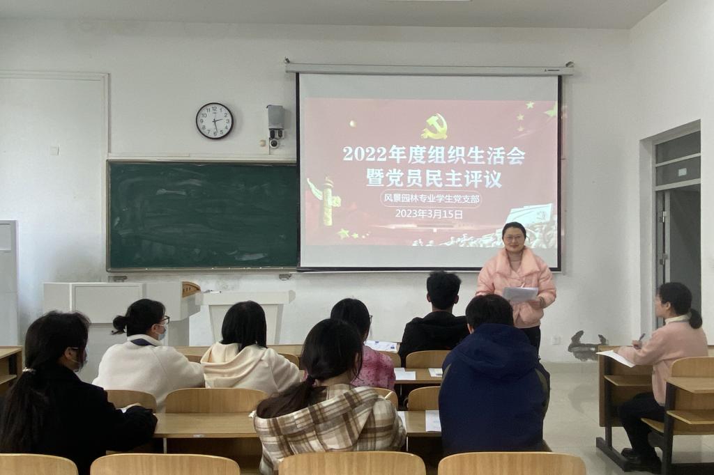 3月15日,风景园林专业学生党支部在致A108召开了2022年度组织生活会暨党员民主评议大会。会议由党支部书记吴婷婷同志主持,党支部全体党员参加,学院党政办主任靳盼同志到会指导。