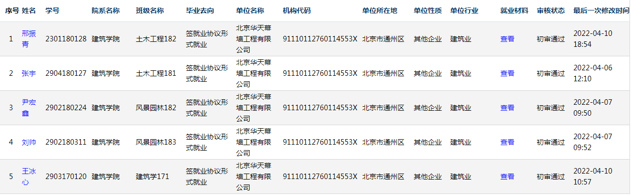 3月28日下午北京华天幕墙工程有限公司依托腾讯会议举行线上宣介会,建筑学院2022届毕业生100余人参加宣介会。会后,30余人有意向向公司投递了简历,参加了企业的面试等考核环节。截至4月10日,学院5名毕业生顺利被北京华天幕墙工程有限公司录取并签订就业协议。