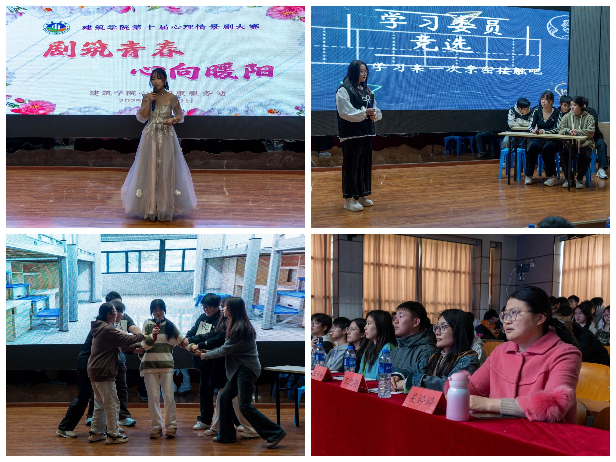 为深入推进大学生心理健康教育工作,丰富校园文化生活,3月29日下午建筑学院在敏行楼A102成功举办第十届心理情景剧大赛。学院党政办主任靳盼、辅导员阮怀思、学生会执行主席王梓阳、心理健康服务站站长林浩以及信网学院心理健康服务站站长张惠乐担任本次比赛的评委,2024级辅导员和全体学生参加本次活动。